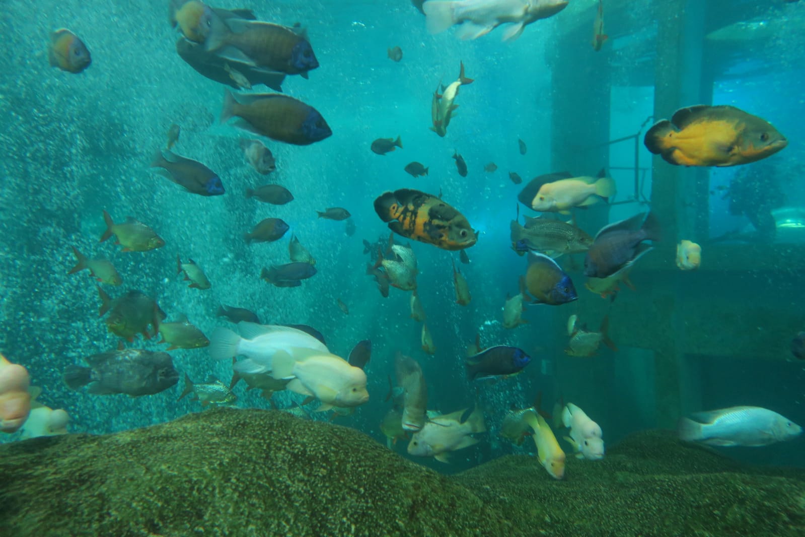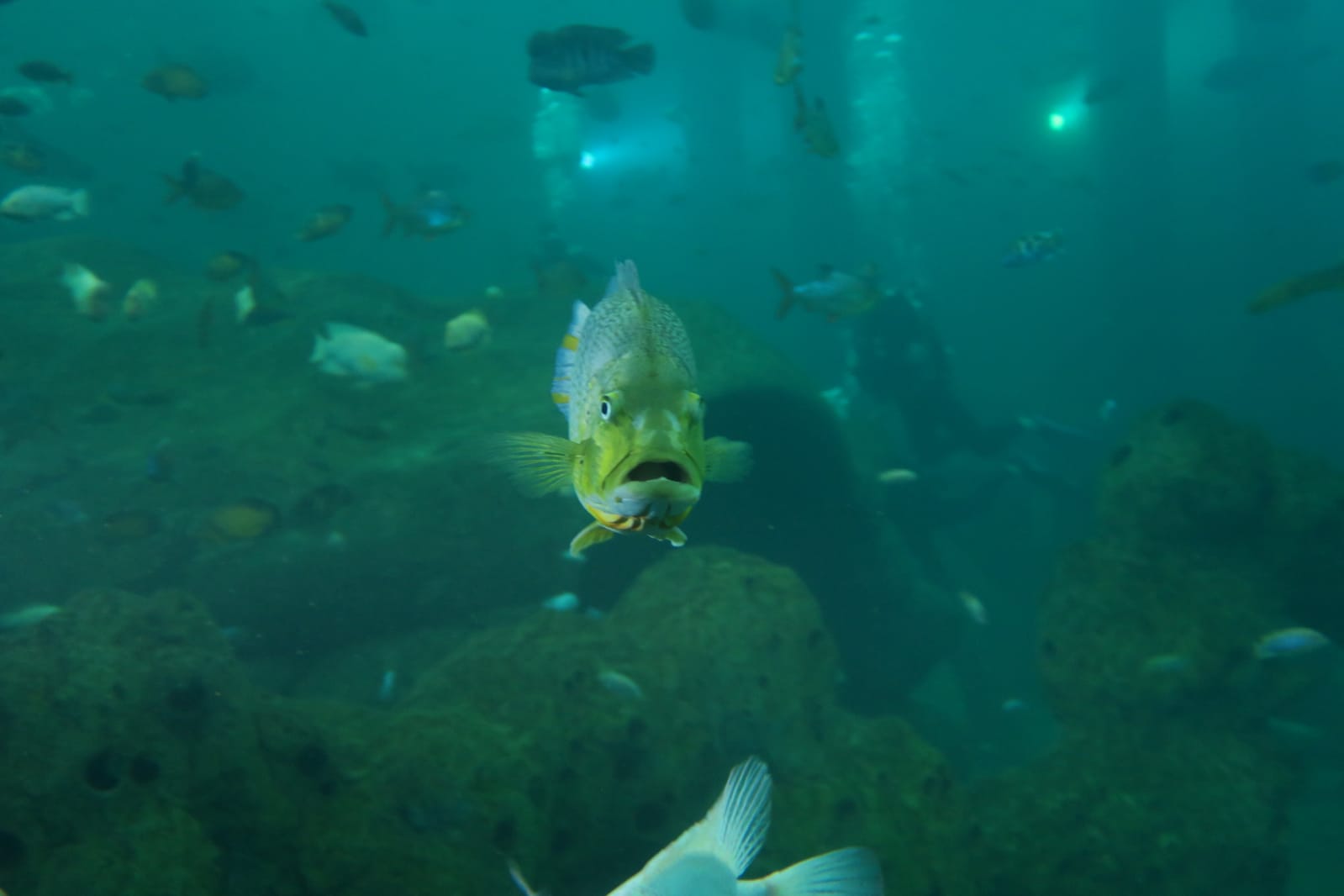 Na een broodje, bijpraten over de eerder gemaakte duik én de instructie van de crew was het tijd voor onze duik. Omkleden, setje spoelen en je setje opbouwen en uiteindelijk het water in! TODI is een indoorduikcentrum met een waterbassin van wel 6.200.000 liter water en dus werd al snel door velen het dieptste punt aangetikt. Vanaf 10.4 meter heb je een mooi overzicht over het bassin dat een diameter van 36 meter heeft. TODI Beschikt over heel veel leuke, kleine en grote, tropische zoetwatervissen die zich prima rustig laten bestuderen. Met de grote hoeveelheid en de variatie aan vissen, de verschillende onderwaterelementen zoals onder andere afgezonken autowrakken, gecreëerde canyons en een onderwatertuin is er een hoop te zien!